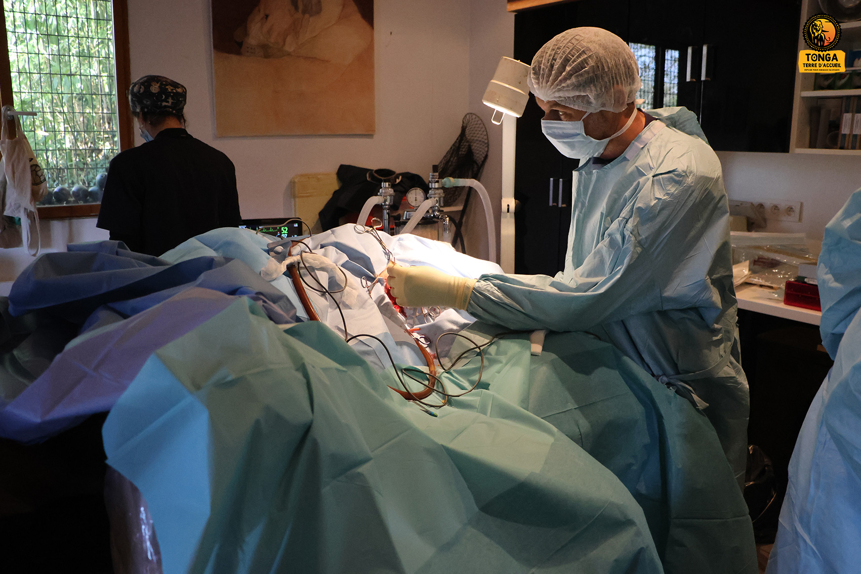 Yembé, notre lion sauvé du trafic en 2020 par notre association Tonga Terre d'Accueil qui est de retour au sein de l'Espace Zoologique avec ses deux femelles Shenzi et Asili, a subi une deuxième chirurgie de greffe osseuse.