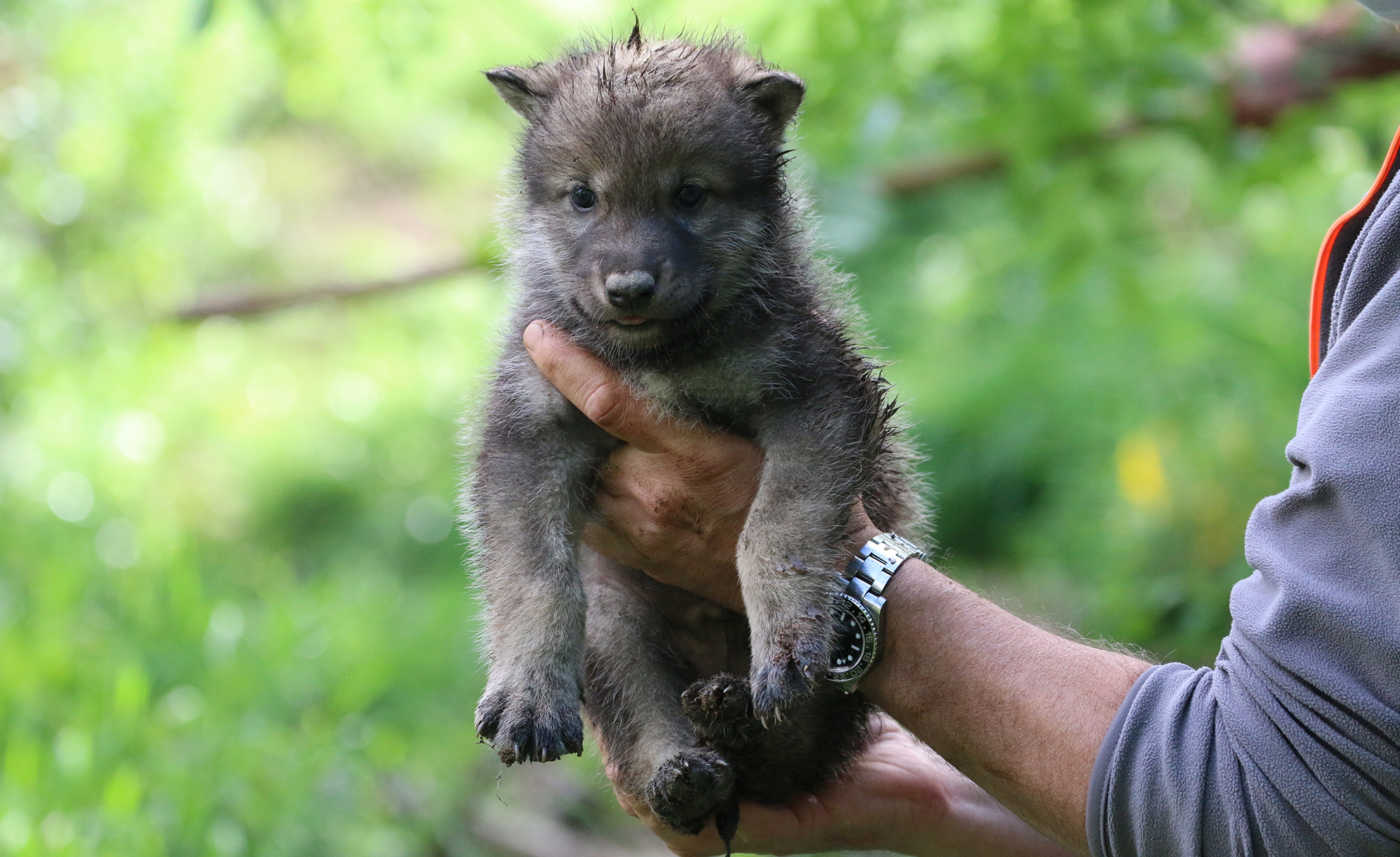 Nous venons de procéder au puçage et au sexage des louveteaux. Il y a donc 2 femelles et 2 mâles. Ils ne sortent pour l’instant de leur tanière qu’à de brefs moments.
