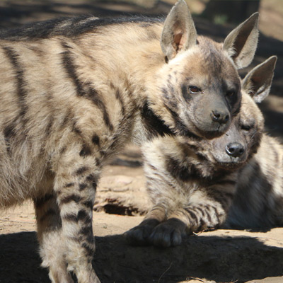 Les membres de l’association libanaise ont alors découvert la hyène dans un état catastrophique, elle était extrêmement stressée, et avait la peau à vif sur le nez et la queue. Comme elle ne pouvait pas être relâchée car elle n’a jamais appris à chasser, Tonga Terre d’Accueil a accepté de la recueillir. C’est ainsi qu’en 2012, Sara arriva à Saint-Martin-la-Plaine. Après avoir été présentée à un mâle, elle a été déplacée au sein du parc où elle bénéficie d’un enclos plus grand. Depuis, elle a donné naissance à plusieurs petits.