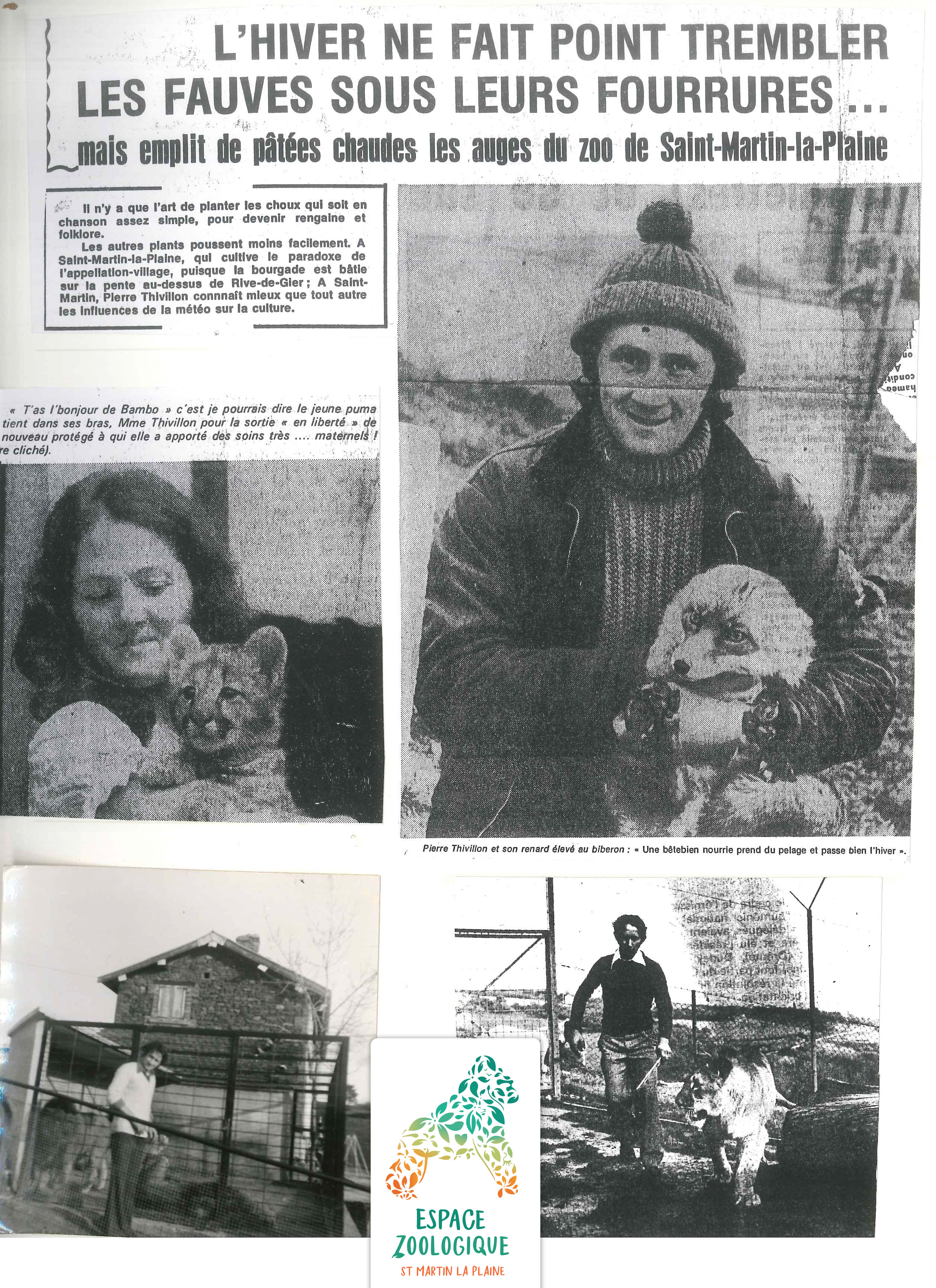 Depuis 1972, Eliane et Pierre Thivillon n’ont cessé d’œuvrer pour les animaux. D’abord horticulteurs à Saint-Martin-la-Plaine, l’accueil et le soin des animaux locaux blessés remplacèrent très vite leur amour des fleurs pour celui des animaux. Ils décidèrent alors de fonder le parc avec tous ces animaux sauvés.