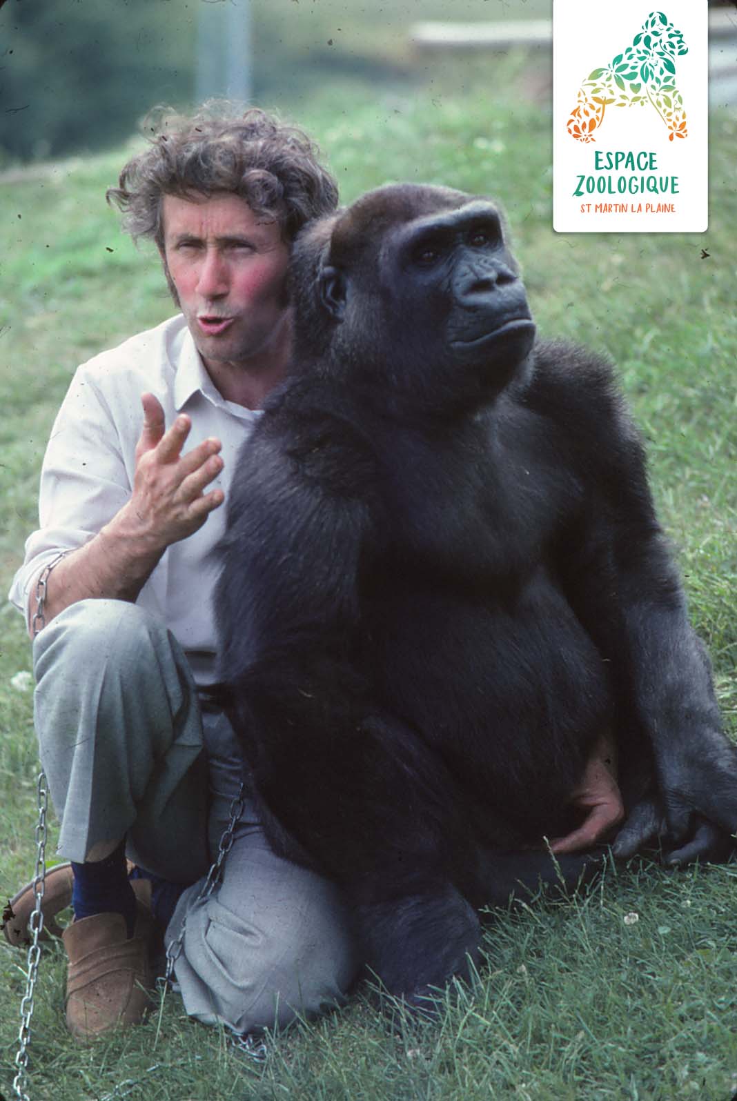 En 1974, des particuliers originaires de Rive-de-Gier demandèrent à Eliane et Pierre de s’occuper quelques jours d’un bébé gorille : Alexis. Mais les jours se transformèrent en semaines puis en mois, et Alexis resta à Saint-Martin-la-Plaine.