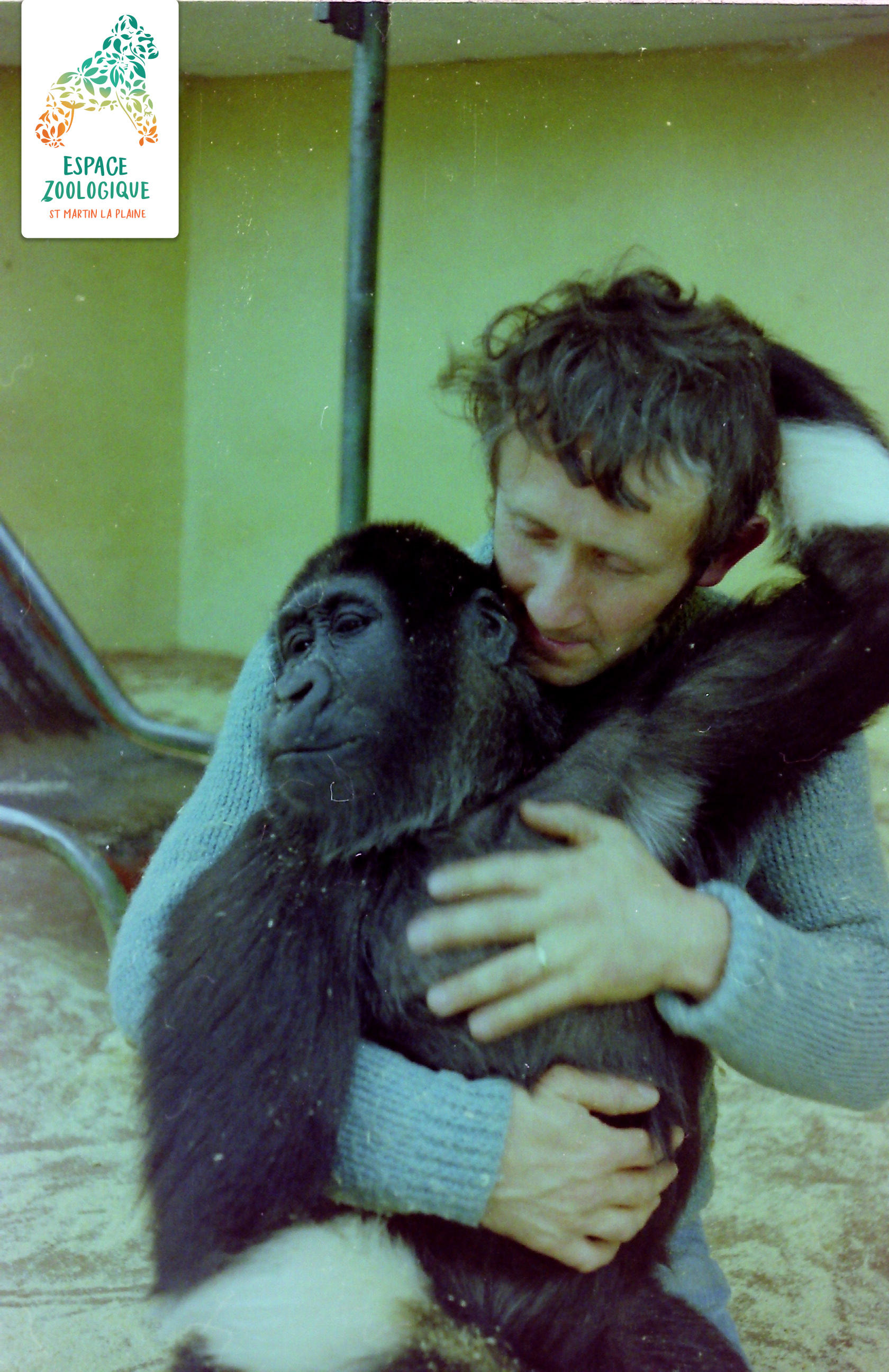 Son histoire hors du commun commença en 1972 lorsqu’un médecin français eu soigné la femme d’un chef de tribu au Gabon. Ce chef lui offra, en remerciement, un bébé gorille. Bien qu’embarrassé par ce cadeau mais ne souhaitant pas vexer le chef, il garda le primate.