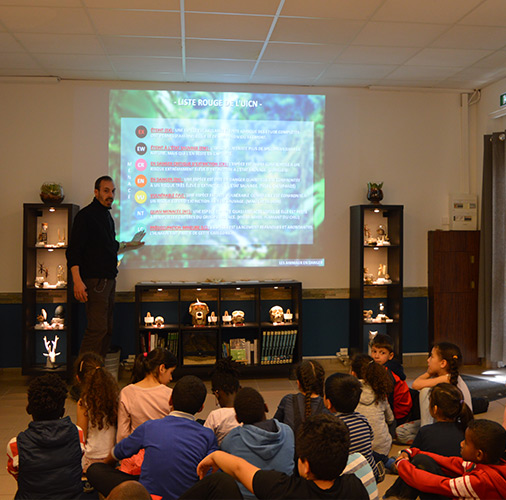 Supports pédagogiques : poils, empreintes, photos, jeux pédagogiques : débats mouvants.