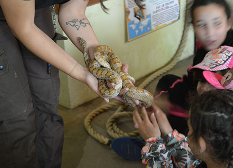 L'animateur(trice) fera toucher un serpent, une tortue et un lézard à ceux qui le souhaitent.