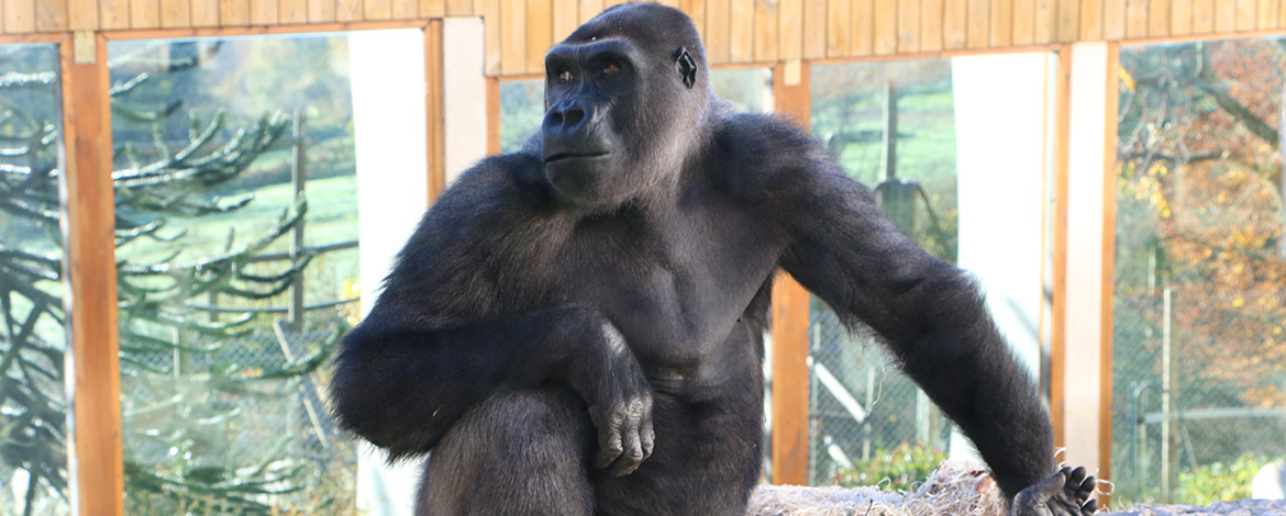 - Rencontre avec Likalé (mâle gorille) et observation d'une distribution de gourmandise. */**