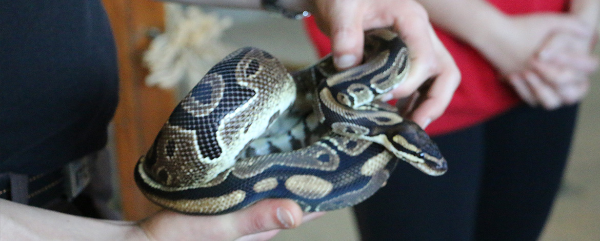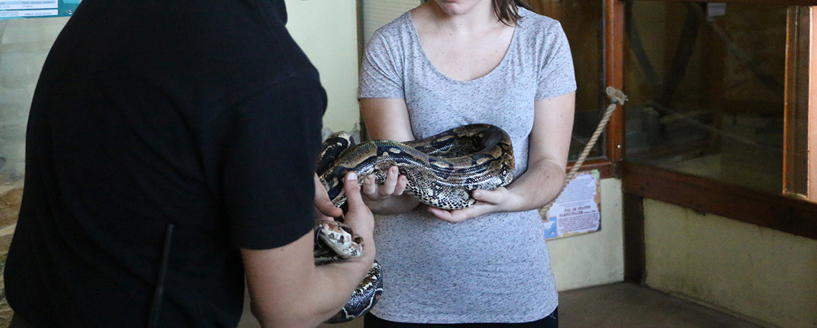 - Rencontre et manipulation d'un lézard et de trois serpents du vivarium.