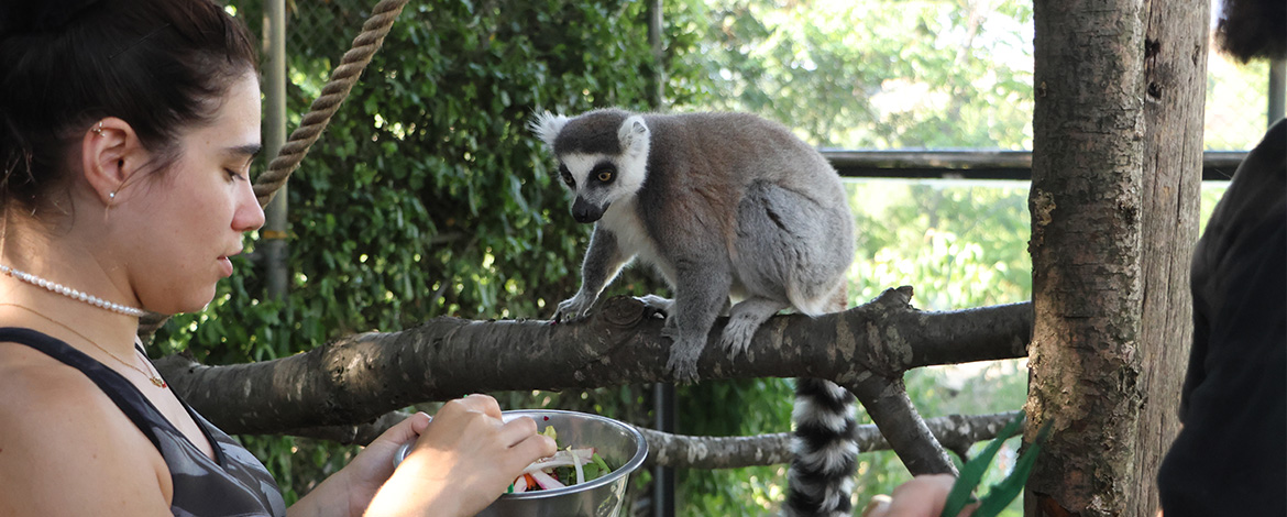 - Préparation de plats et nourrissage des lémuriens à la main dans leur enclos.
