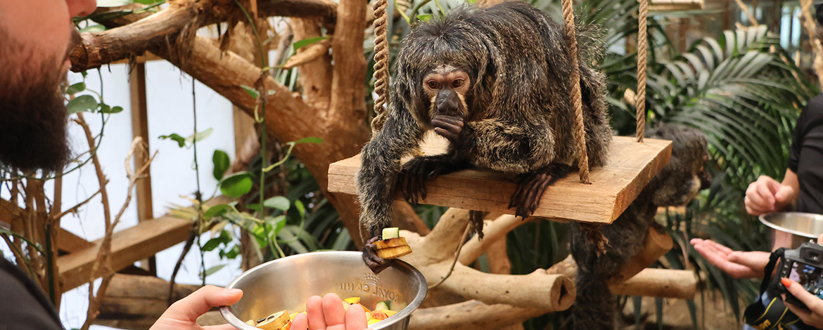 - Nourrissage des ouistitis et des toucans OU des sakis à face blanche dans leur enclos.*